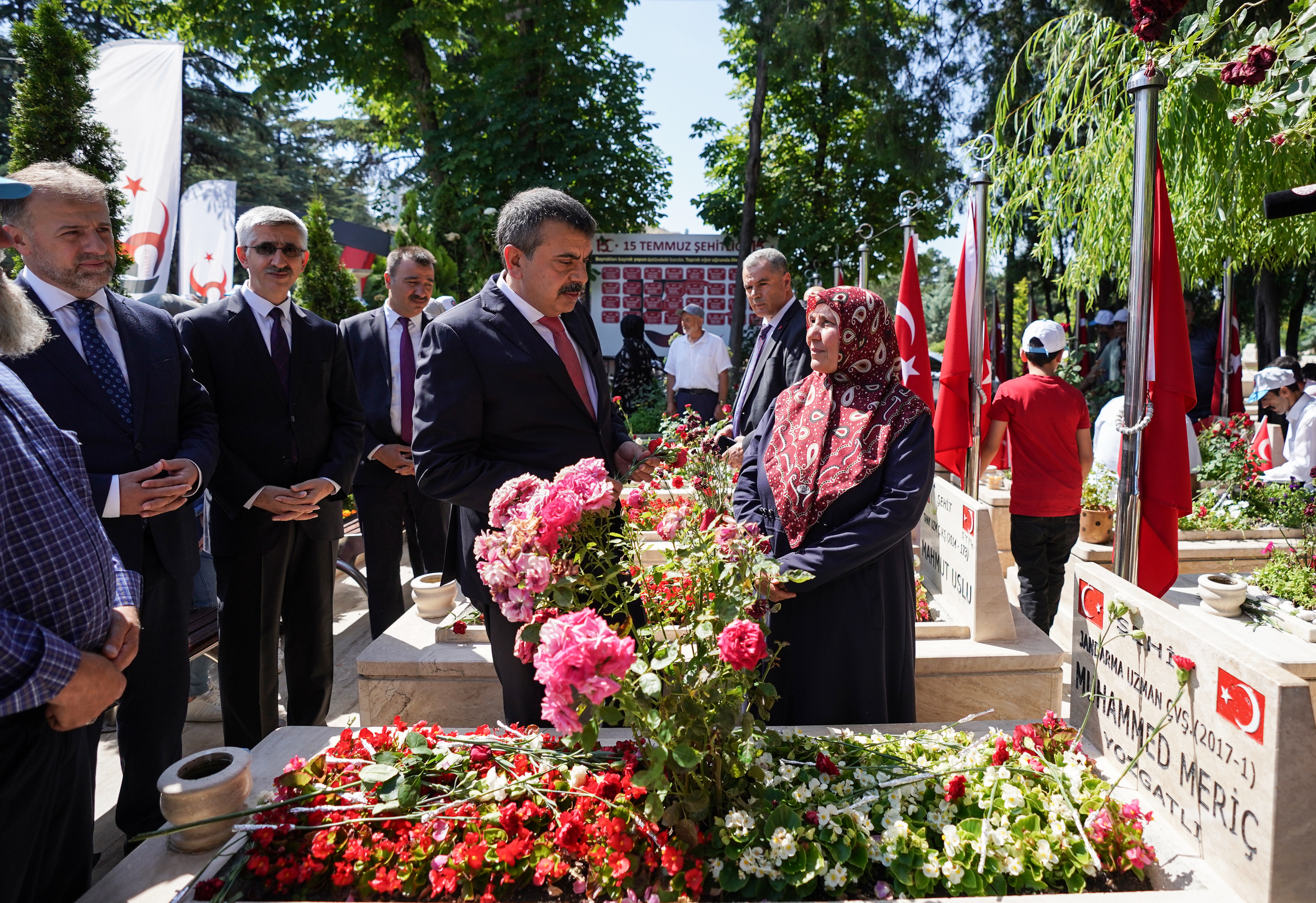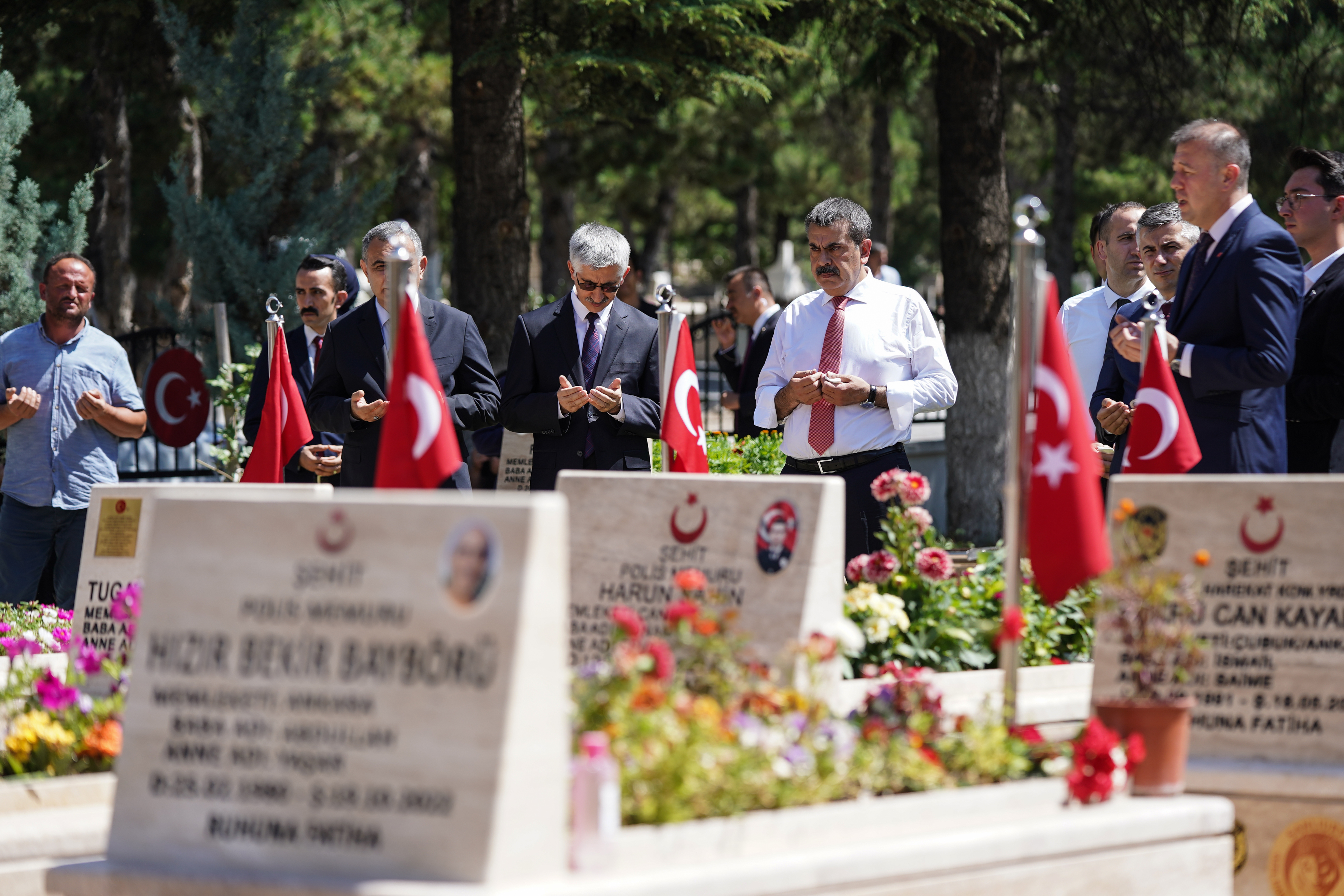 Millî Eğitim Bakanı Yusuf Tekin, Karşıyaka Mezarlığı’ndaki 15 Temmuz Şehitliği’nde düzenlenen törende darbe girişiminde şehit olan 15 Temmuz şehitlerini ziyaret etti. Kur’an-ı Kerim ve duaların okunduğu törende Bakan Tekin, şehit mezarlarına karanfil bıraktı.
