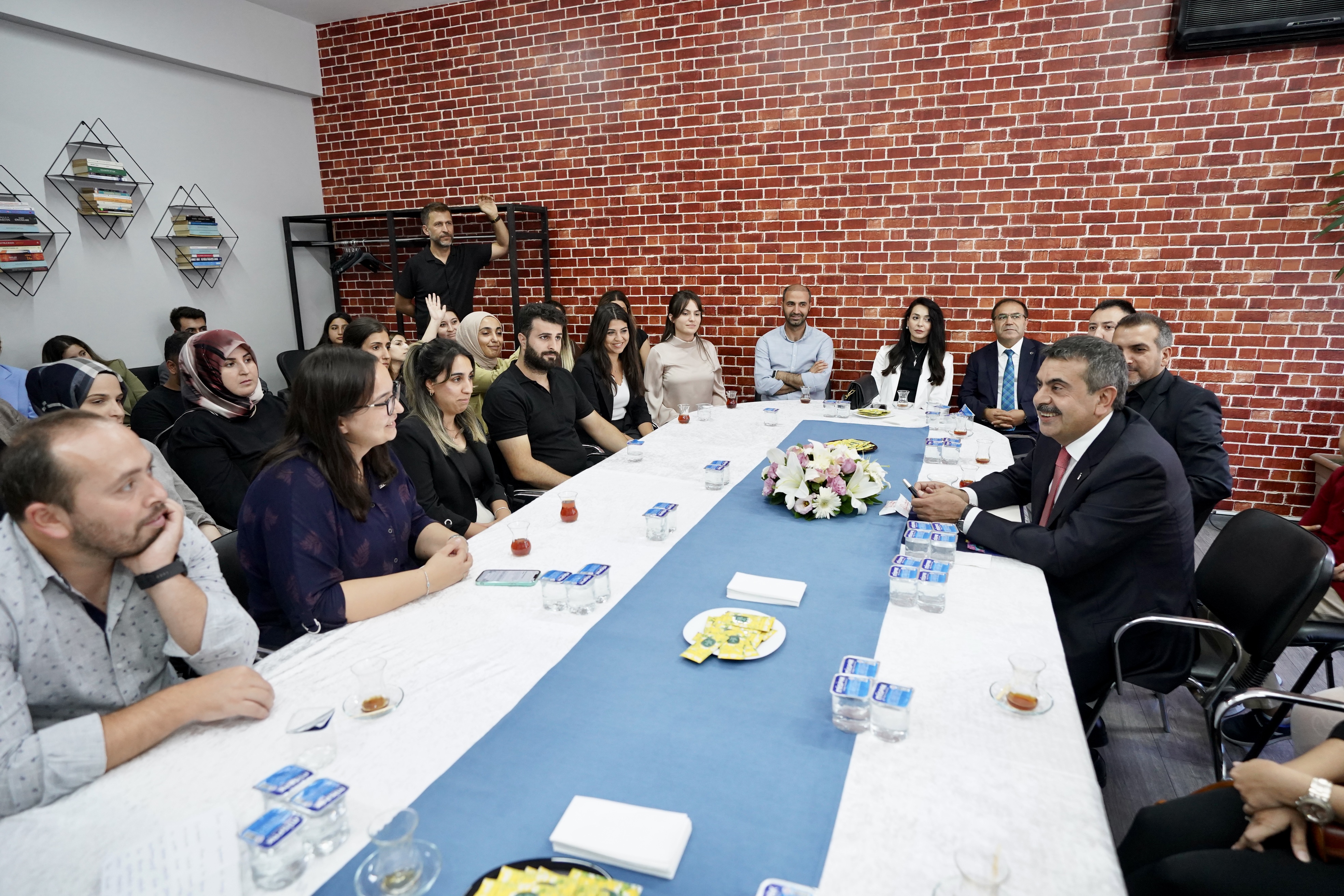 Tekin, daha sonra öğretmenler odasında öğretmenlerle bir araya geldi, sohbet etti.