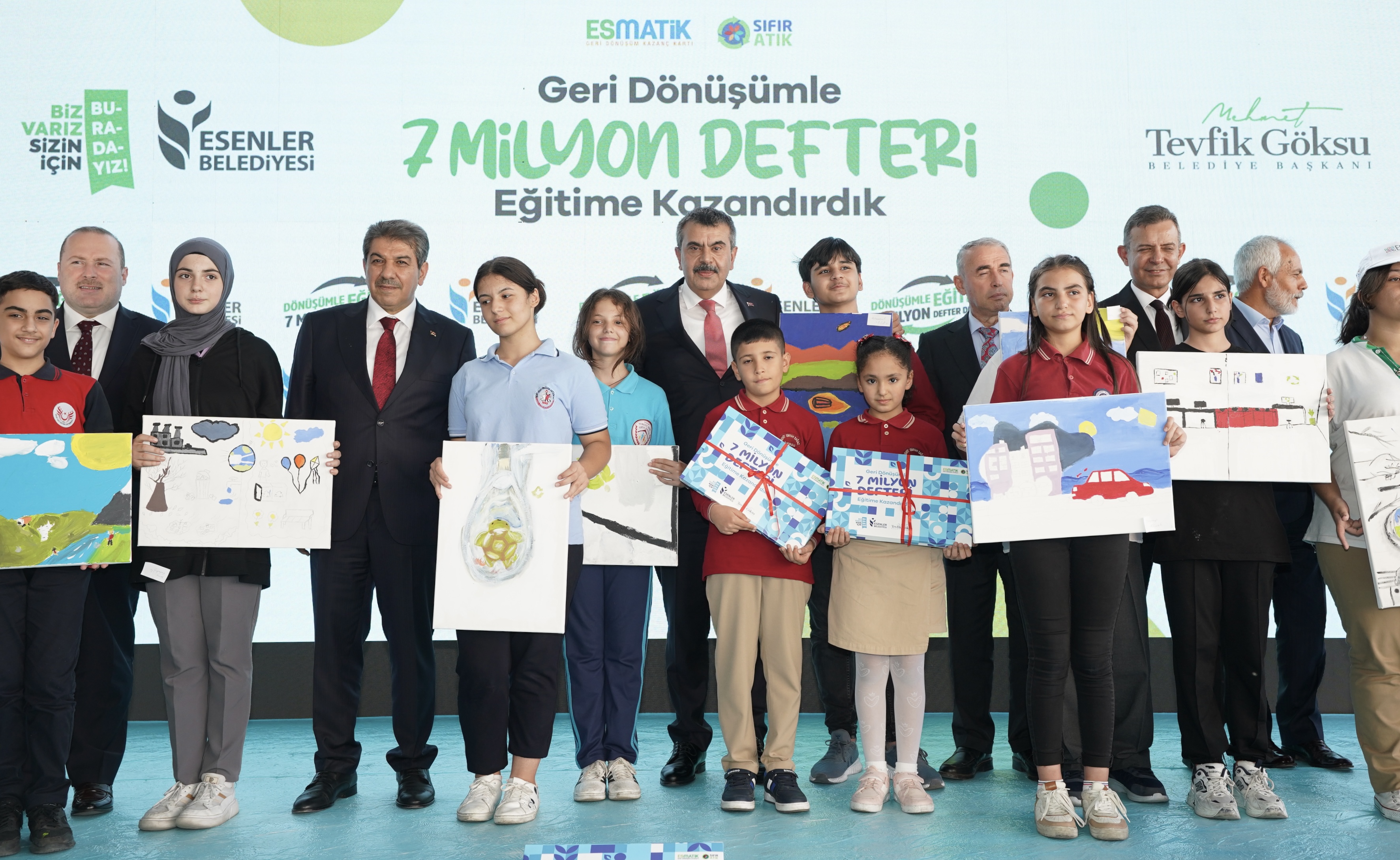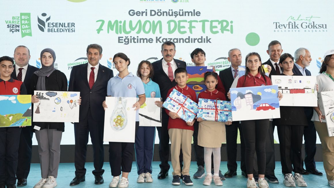 Millî Eğitim Bakanı Yusuf Tekin, geri dönüşümden elde edilen defterlerin öğrencilere dağıtım törenine katıldı.