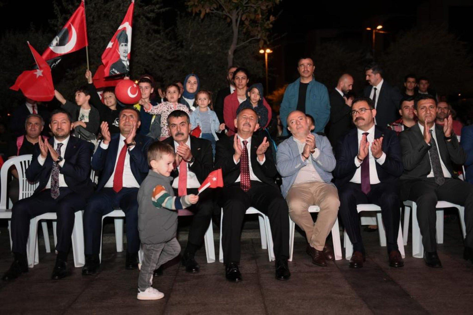 Milli Eğitim Bakanı Tekin ile Çevre, Şehircilik ve İklim Değişikliği Bakanı Özhaseki, etkinlikler kapsamında dron ve lazerle yapılan gösteriyi de izledi.