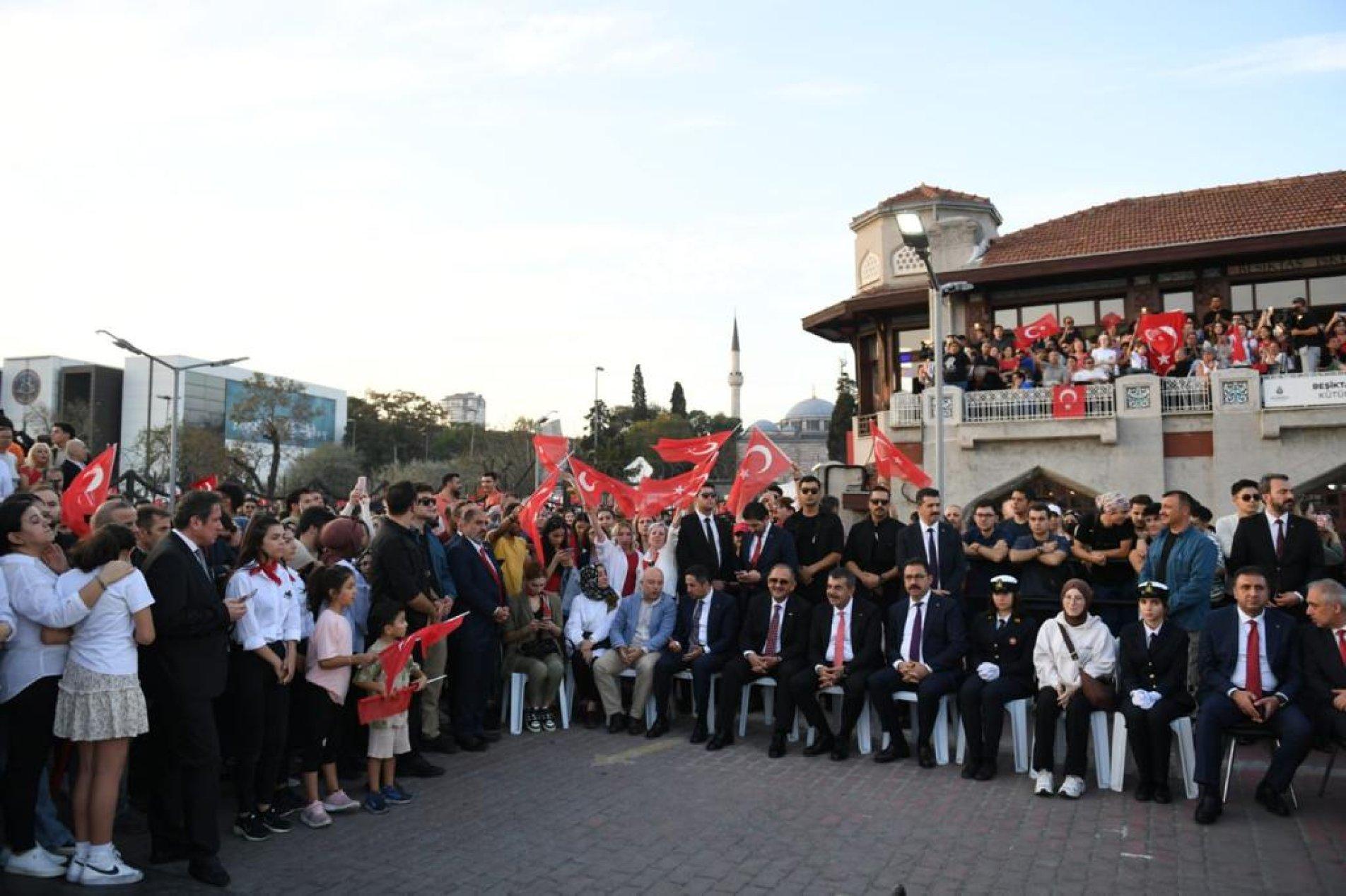Türk bayraklarıyla iskeleyi dolduran vatandaşlar dev ekranlardan kutlamaları coşkuyla takip etti.