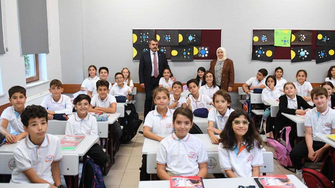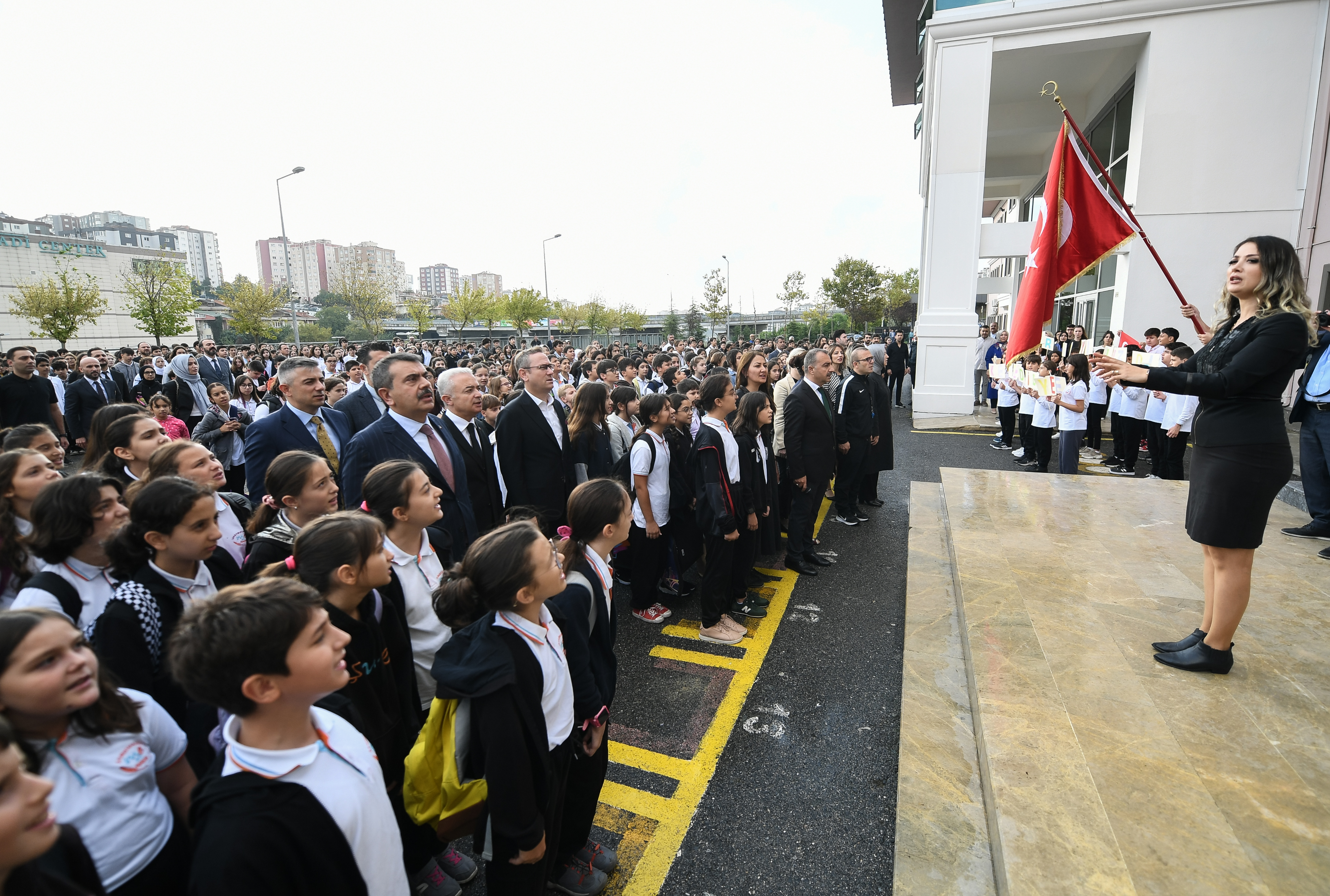 Millî Eğitim Bakanı Yusuf Tekin, İBB Şehit Polis Mustafa Erdoğan Ortaokulunu ziyaret ederek ilk ders zili öncesi düzenlenen bayrak töreninde öğrencilerle İstiklal Marşı’nı okudu.