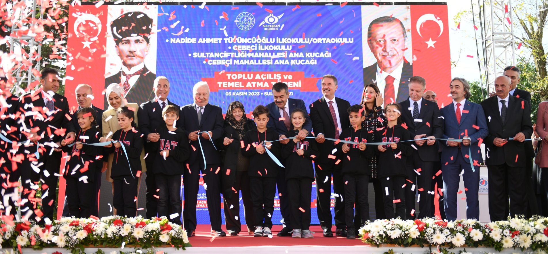 Millî Eğitim Bakanı Yusuf Tekin, İstanbul Sultangazi’de Nadide-Ahmet Tütüncüoğlu İlkokulu ve Ortaokulu, Cebeci İlkokulu ve Sultançiftliği Mahallesi Ana Kucağının açılışı ile Cebeci Mahallesi Ana Kucağının temel atma törenine katıldı.