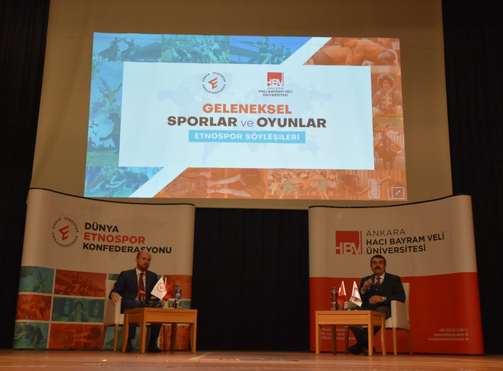 Ankara Hacı Bayram Veli Üniversitesi, “Geleneksel Sporlar ve Oyunlar Etnospor Söyleşileri” düzenledi. Akademisyenlerin ve öğrencilerin katıldığı söyleşide, Dünya Etnospor Konfederasyonu (DEK) Başkanı Necmeddin Bilal Erdoğan konuşmacı olarak yer alırken, etkinliğin moderatörlüğünü de Ankara Hacı Bayram Veli Üniversitesi Rektörü Prof. Dr. Yusuf Tekin yaptı.