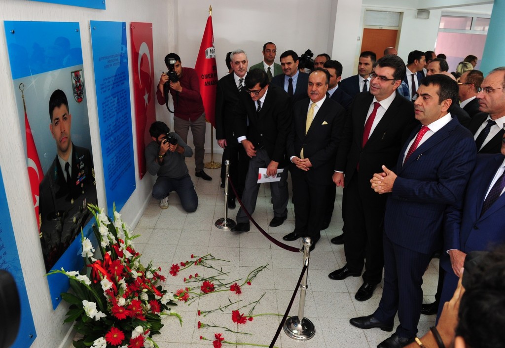Törende, şehit Ömer Halisdemir için hazırlanan köşede, Türk bayrağı, şehidin resmi, özgeçmişi ile bir kitabe yer aldı. Kitabede şu ifadelere yer verildi: “15 Temmuz 2016 tarihinde Türkiye Cumhuriyeti´nin bölünmez bütünlüğüne kasteden bir darbe girişimi gerçekleştirilmiştir. Özel Kuvvetler Komutanlığı mensubu olan kahramanımız Ömer Halisdemir şehit olacağını bilmesine rağmen darbecilerin en önemli isimlerinden birini hak ettiği biçimde alnından vurmuş ve darbe girişiminin seyrini değiştirmiştir. Şanlı tarihimize yeni bir sayfa açan şehidimizin adı kızının da eğitim ve öğretim gördüğü okulumuza yüce bir miras olarak kalmıştır.