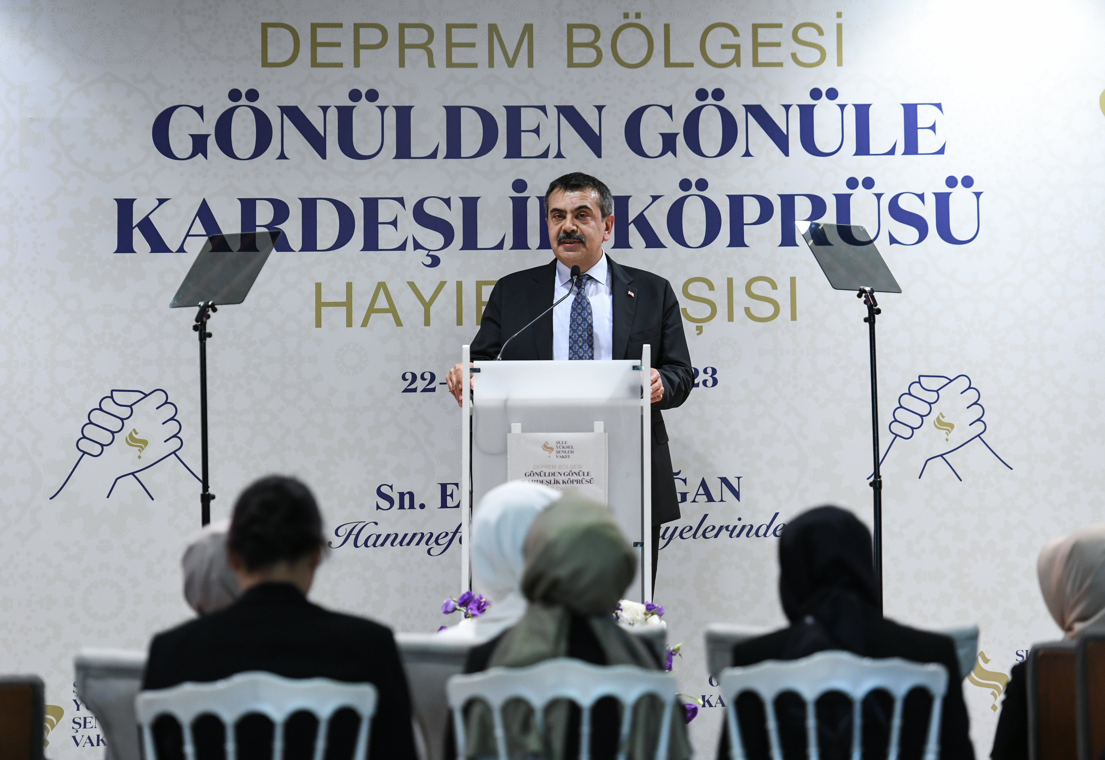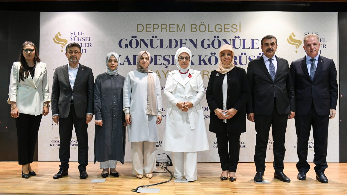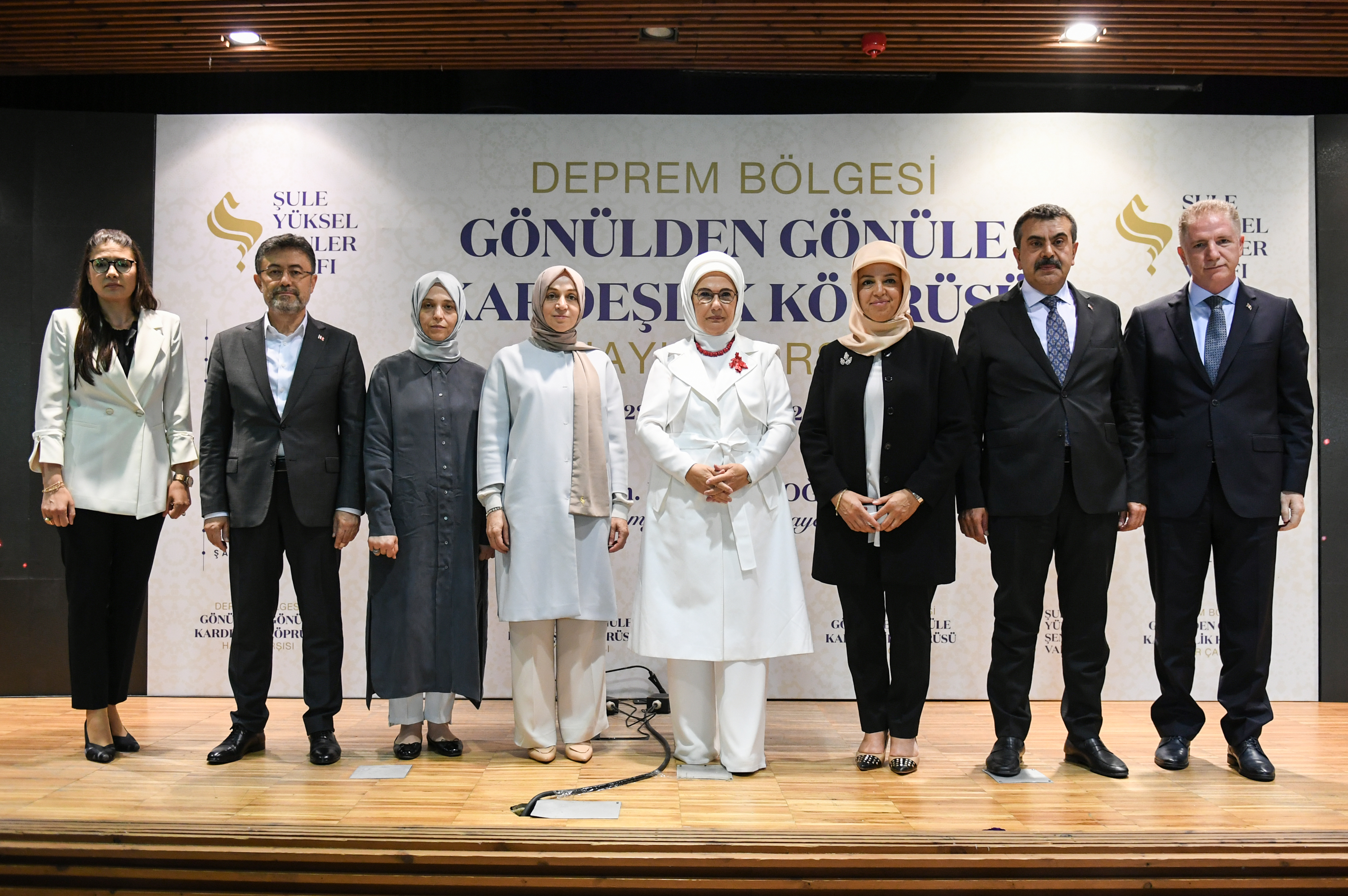 Cumhurbaşkanı Recep Tayyip Erdoğan’ın eşi Emine Erdoğan’ın Onursal Başkanlığını yaptığı Şule Yüksel Şenler Vakfı ile Millî Eğitim Bakanlığı iş birliğinde depremzedeler yararına düzenlenen “Gönülden Gönüle Kardeşlik Köprüsü Hayır Çarşısı” etkinliğinin açılış programı, Emine Erdoğan ve Millî Eğitim Bakanı Yusuf Tekin’in katılımlarıyla gerçekleştirildi.