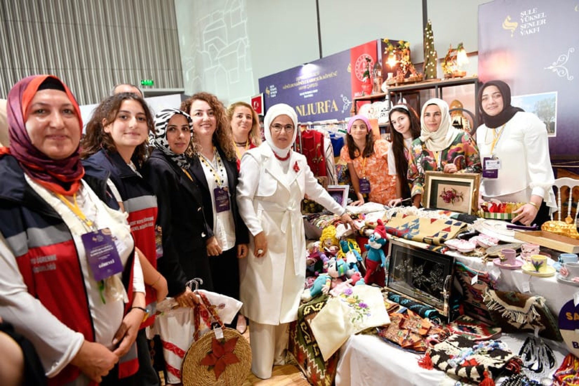 Emine Erdoğan, bugün açılışı yapılan Hayır Çarşısı’nda, bölgede faaliyet gösteren merkezlerin yanı sıra Şule Yüksel Şenler Vakfının tasarım ve dikiş atölyelerinde üretilen ürünlerin de yer aldığını hatırlatarak ayrıca 11 ilin el sanatları ve gastronomik zenginliklerinin de sergilendiğini kaydetti.