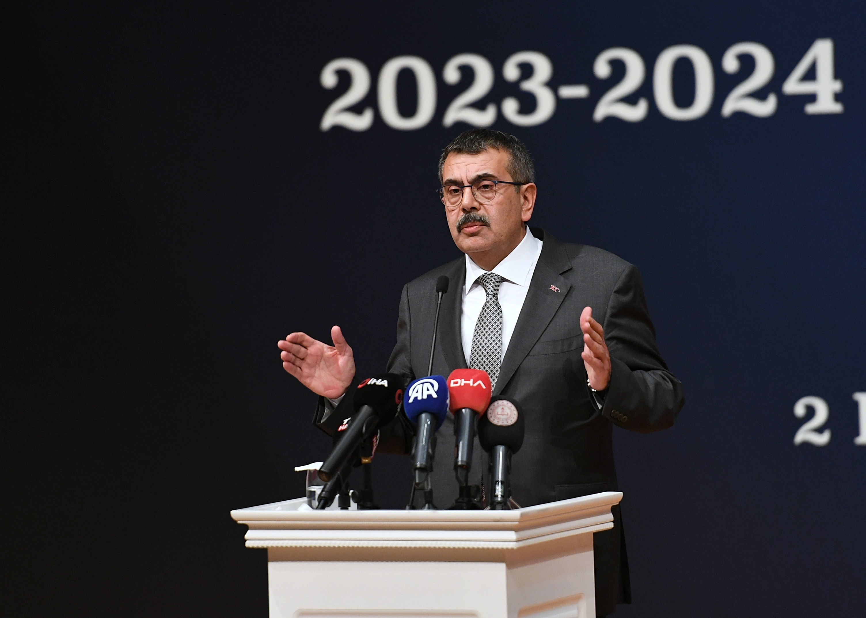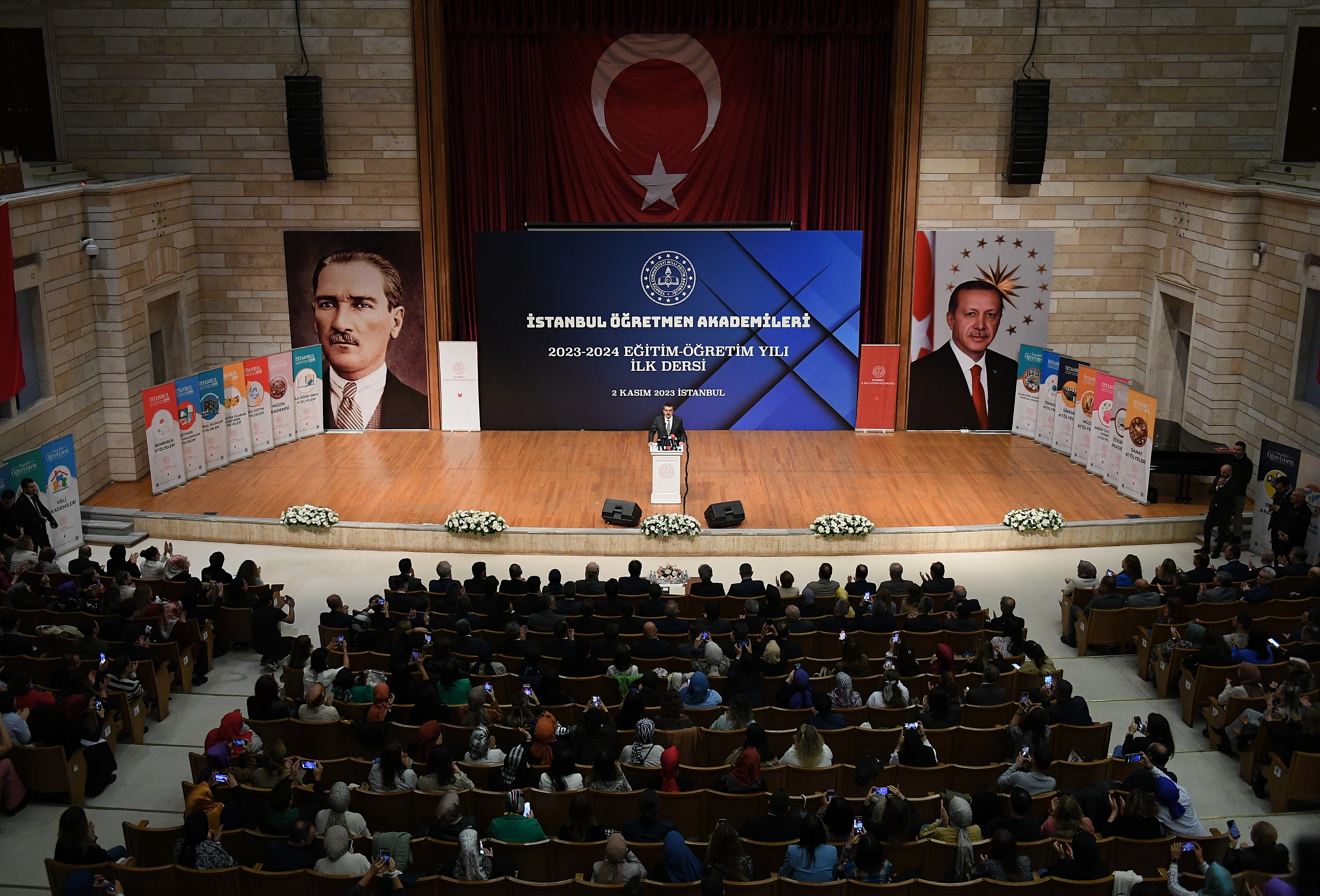 İstanbul Üniversitesi Fen-Edebiyat Fakültesi Ord. Prof. Cemil Bilsel Konferans Salonu’nda, İstanbul Öğretmen Akademilerinin 2023-2024 Eğitim Öğretim Yılı açılış dersinde konuşan Bakan Tekin, sözlerine cumhuriyetin 100. yılında Gazi Mustafa Kemal Atatürk’e ve tüm şehitlere rahmet dileğinde bulunarak başladı.