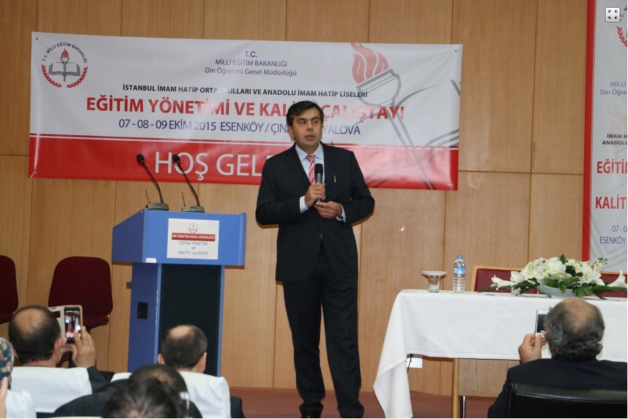 Din Öğretimi Genel Müdürlüğü tarafından İstanbul’daki imam hatip liselerinin okul müdürlerine yönelik gerçekleştirilen Eğitim Yönetimi ve Kalite Çalıştayı 7-9 Ekim 2015 tarihleri arasında Yalova Esenköy Hizmet İçi Eğitim Enstitüsü’nde gerçekleşti. Çalıştayın kapanış programına katılan MEB Müsteşarı Doç. Dr. Yusuf TEKİN, yaptığı konuşmanın ardından okul müdürlerini dinledi.