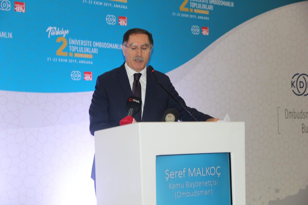 Kamu Başdenetçisi Şeref Malkoç da, “İdarenin denetlenebilirliğini ve şeffaflığını sağlayabilirsek Türkiye’de birçok şey kendiliğinden hallolacaktır. Özellikle bütün şehirleri dolaşıyoruz. Öğrencilerle ombudsmanlık toplulukları kuruyoruz. Amacımız, Türkiye’de hak arama kültürünü yaygınlaştırmak” şeklinde konuştu. Vatandaşın, idareci ile yöneticiler karşısında haklarının korunması gerektiğini vurgulayan Başdenetçi Malkoç, “Kamu Denetçiliği Kurumu, idare karşısında vatandaşın hakkını, hukukunu korumak için kurulmuştur. Bir bakıma idare ile vatandaş arasında bir barış köprüsüdür” diye konuştu. Türkiye’de yaklaşık 8 milyon üniversite öğrencisi bulunduğunu hatırlatan Malkoç, “Düzgün, hukuka uygun hareket eden, ahlaklı gençlik Türkiye’nin en büyük sermayesidir, gücüdür. Biz üniversite gençliği arasında adaleti, hakkaniyeti, hak aramayı yaygınlaştırmak için ombudsmanlık toplulukları kurduk. Ombudsmanlık kültürünü yaygınlaştırmaya çalışıyoruz” şeklinde konuştu. Ombudsmanlık Topluluklarını temsilen konuşma yapan Bitlis Eren Üniversitesi Ombudsmanlık Topluluğu Başkanı Hasan Soyugüzel de, “Kamu Denetçiliği Kurumu, üniversitelerde ombudsmanlık toplulukları kurulmasını teşvik etti. Bitlis Eren Üniversitesi olarak bu çağrıya ilk cevap verenlerden biriyiz. Ombudsmanlığın üniversitelerde daha fazla duyulması için çalışıyoruz.  Üniversite yıllarımızda bu tür çalışmalar yapmanın hakkaniyet ve adalet duygumuzu geliştireceğine inanıyorum” dedi.