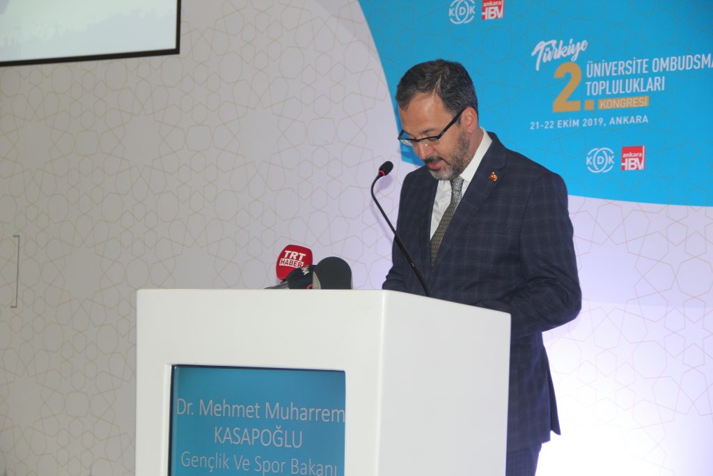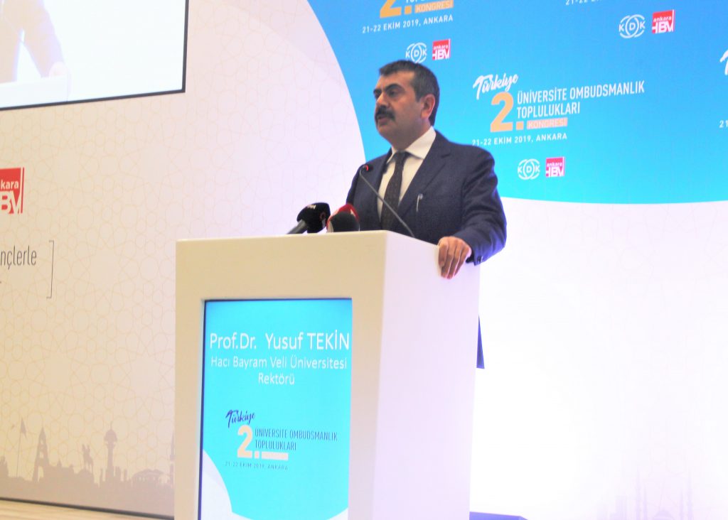 Kamu Denetçiliği Kurumu’nun Ankara Hacı Bayram Veli Üniversitesi iş birliğiyle düzenlediği “2. Türkiye Üniversite Ombudsmanlık Toplulukları Kongresi”nin açılış töreni 21 Ekim 2019’da yapıldı. İktisadi ve İdari Bilimler Fakültesi 100. Yıl Konferans Salonu’nda düzenlenen törene Gençlik ve Spor Bakanı Mehmet Muharrem Kasapoğlu, Kamu Başdenetçisi Şeref Malkoç, Rektör Prof. Dr. Yusuf Tekin’in yanı sıra AFAD Başkanı Mehmet Güllüoğlu, Milletvekillleri Erol Kavuncu, Mahmut Tanal ile kamu denetçileri, öğretim elamanları ve öğrenciler katıldı.