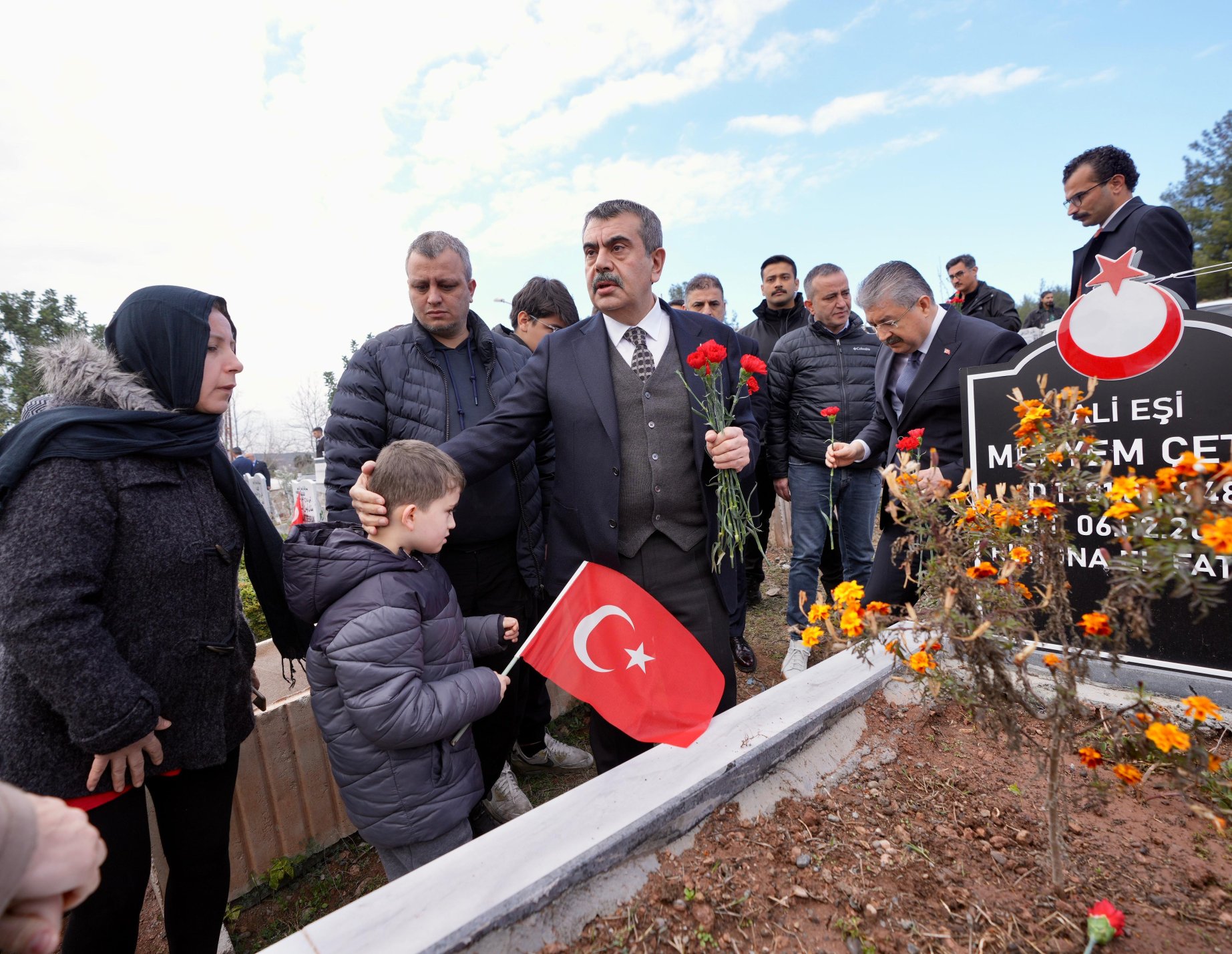 Tekin ve beraberindekiler, ziyarette bulundukları kabirlere karanfil bıraktı. Bakan Tekin, depremde yakınlarını kaybedenlere başsağlığı diledi.