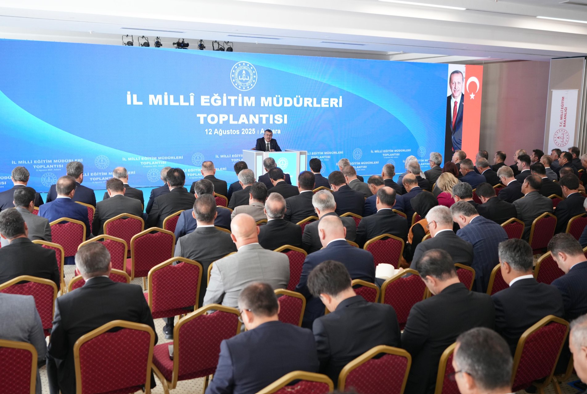 Gölbaşı Mogan Mesleki ve Teknik Anadolu Lisesinde gerçekleştirilen “2025-2026 Eğitim Öğretim Yılı Hazırlık ve Değerlendirme Toplantısı” na Bakan Yardımcıları Celile Eren Ökten, Nazif Yılmaz, Ömer Faruk Yelkenci ile M. Bilal Macit, genel müdürler ve 81 ilin milli eğitim müdürü katıldı.