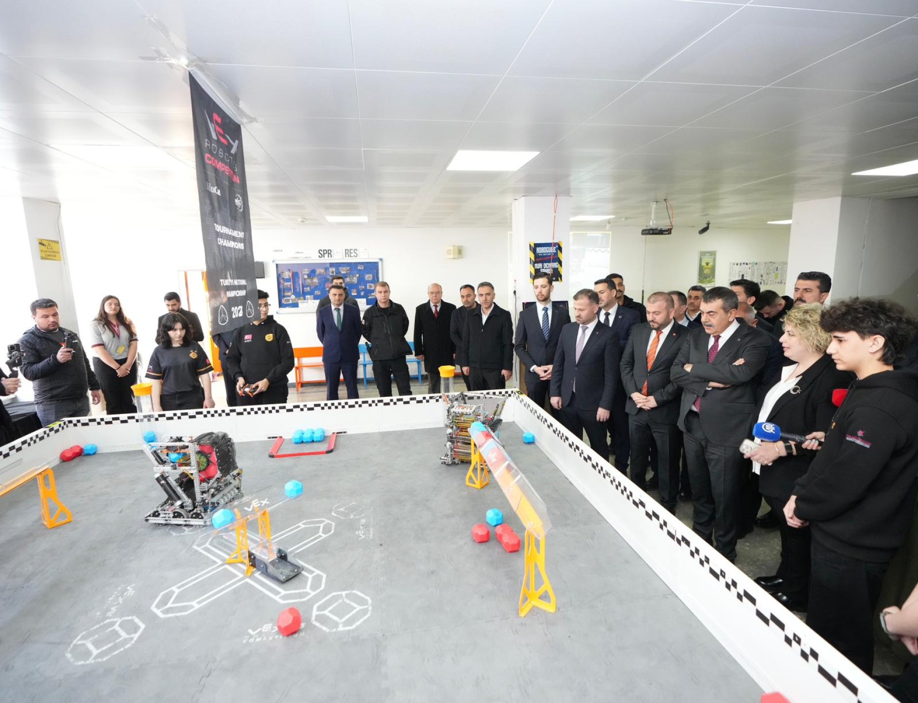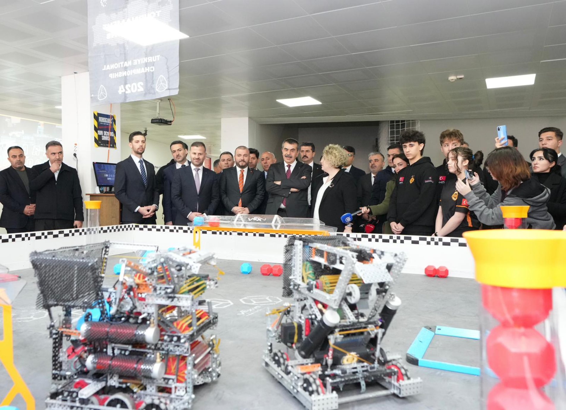 Bakan Tekin, daha sonra Robot Takımları Mühendislik Tasarım Atölyesi’ni ziyaret etti. Öğrencilerin tasarladıkları robotları inceleyen Tekin, öğrencilerden robotlar ve katıldıkları yarışmalar hakkında bilgi alarak kazandıkları ödülleri inceledi.