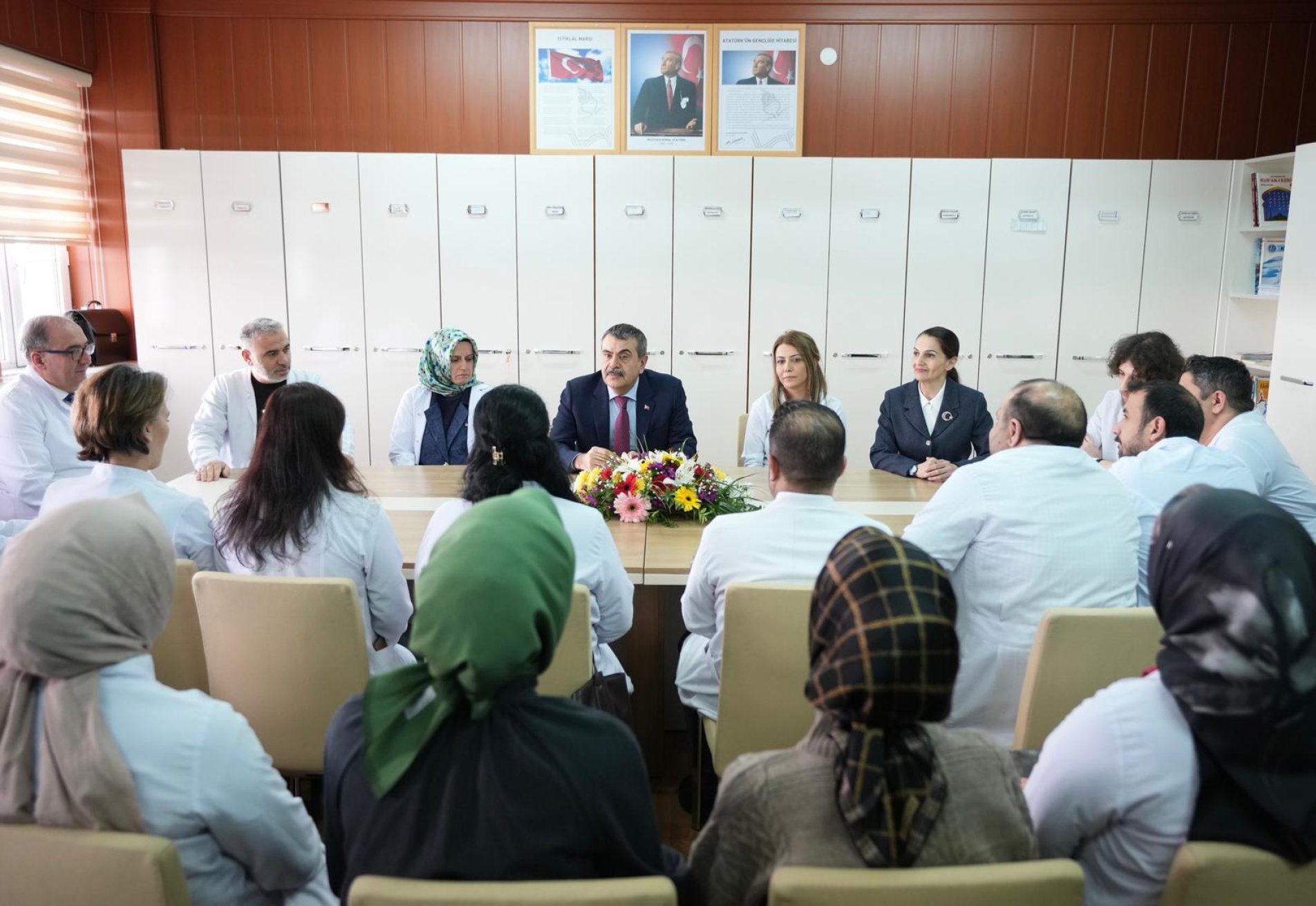 Millî Eğitim Bakanı Tekin, programın ardından öğretmenler odasında bir araya geldiği öğretmenlerle sohbet etti.