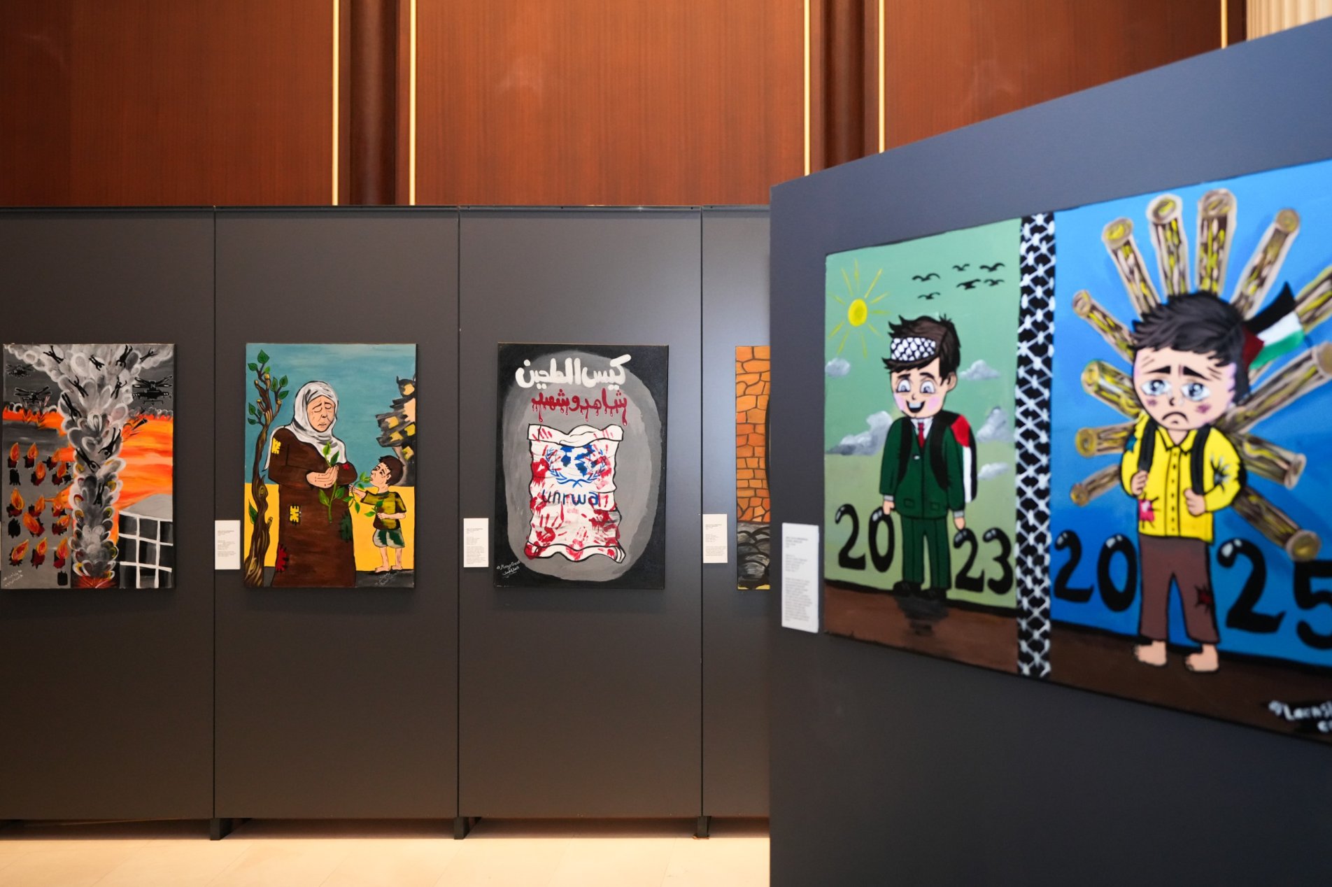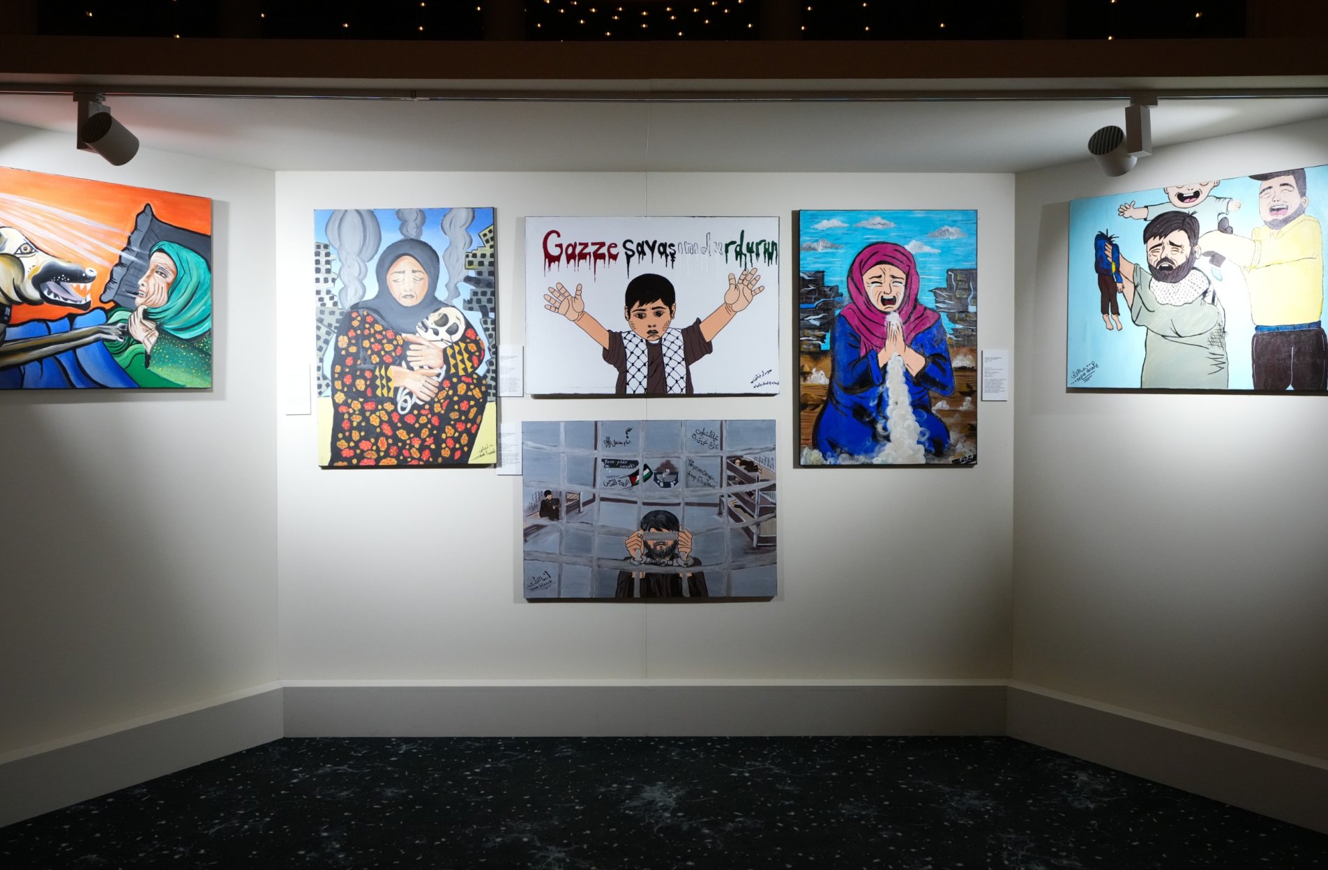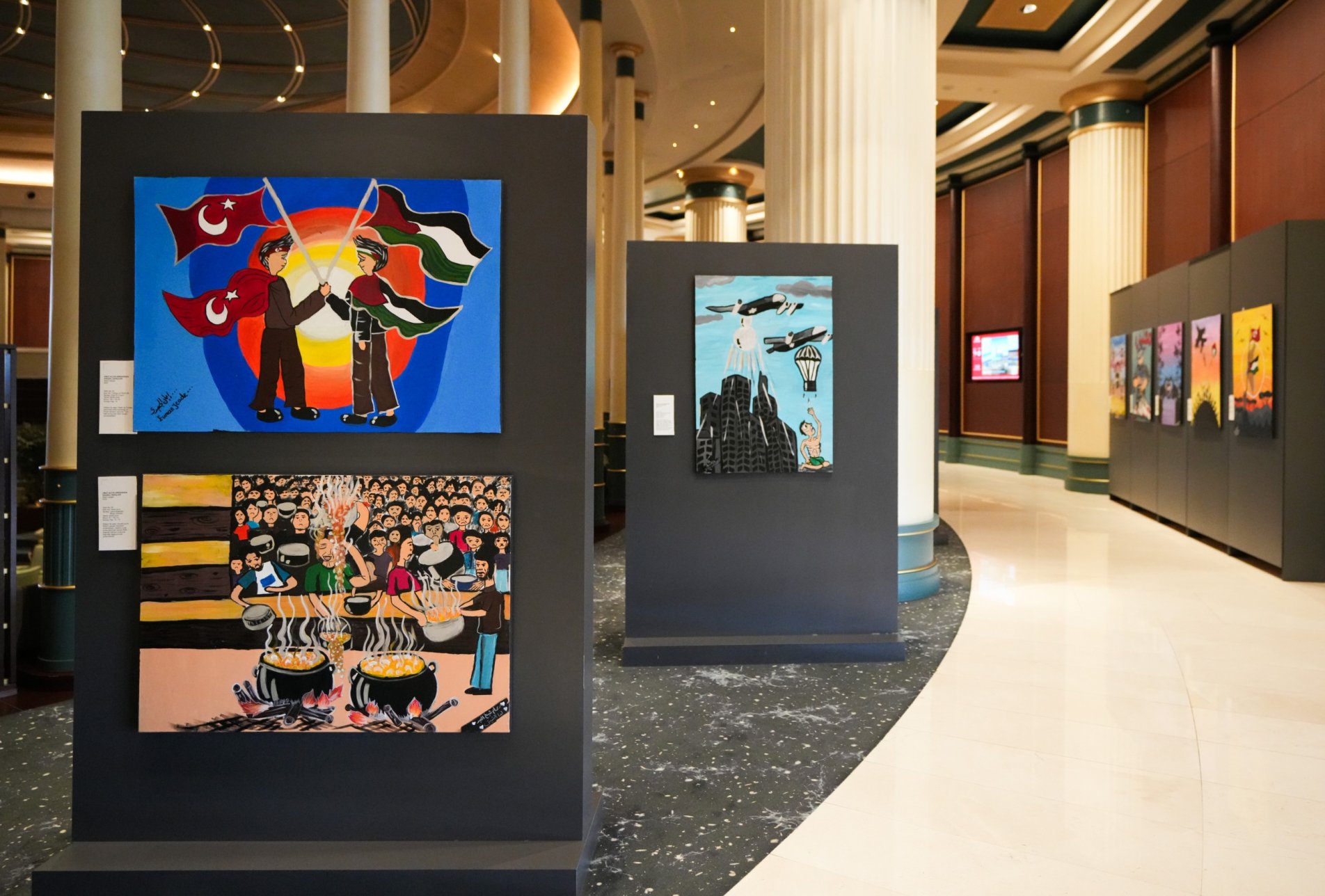 Millî Eğitim Bakanı Yusuf Tekin, Türkiye’ye gelen Filistinli öğrencilerin yaptığı eserlerden oluşan “Umut Acıya Direnirken” adlı resim sergisini ziyaret etti.
