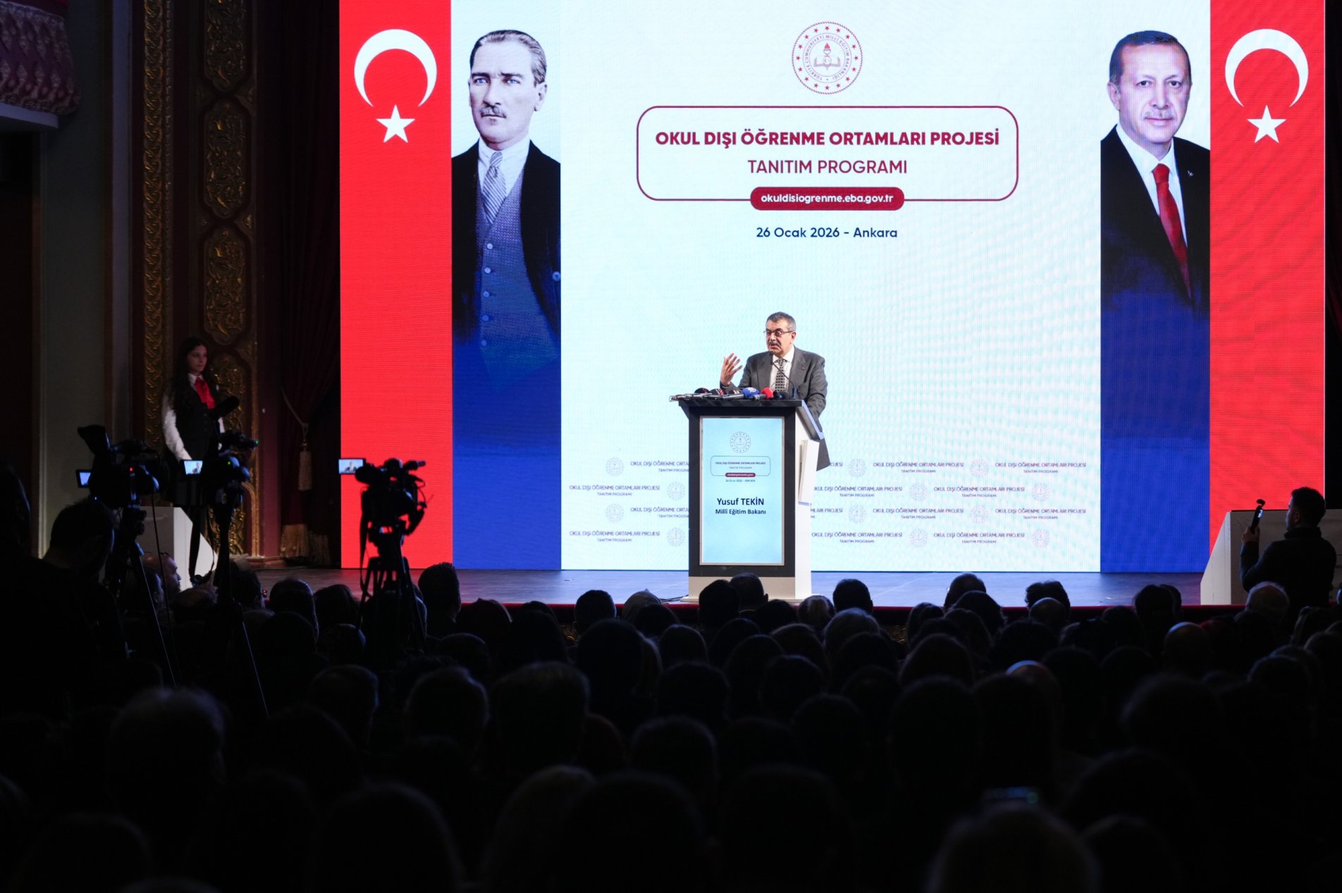 Millî Eğitim Bakanı Yusuf Tekin, öğrenme ortamlarının eğitim sürecine daha etkin entegre edilmesi amacıyla öğretmenlerin derste anlattıkları konuya uygun müze, kütüphane ve bilim merkezi gibi mekanlara tek tıkla erişebileceği, sanal turlardan da yararlanabileceği “Okul Dışı Öğrenme Ortamları” dijital platformunun tanıtım programına katıldı.
