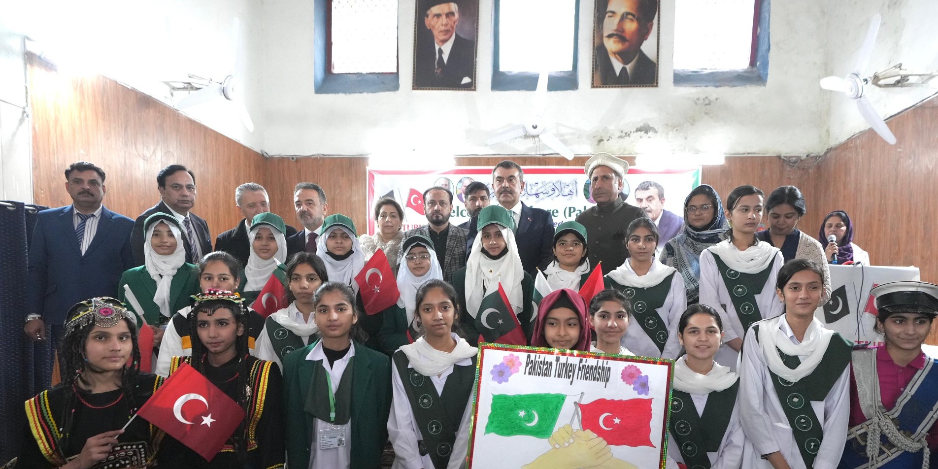 Okulda kendisini Türkiye ve Pakistan bayraklarıyla coşkuyla karşılayan öğrencilerle sohbet eden Bakan Tekin’e çiçek takdim edildi.