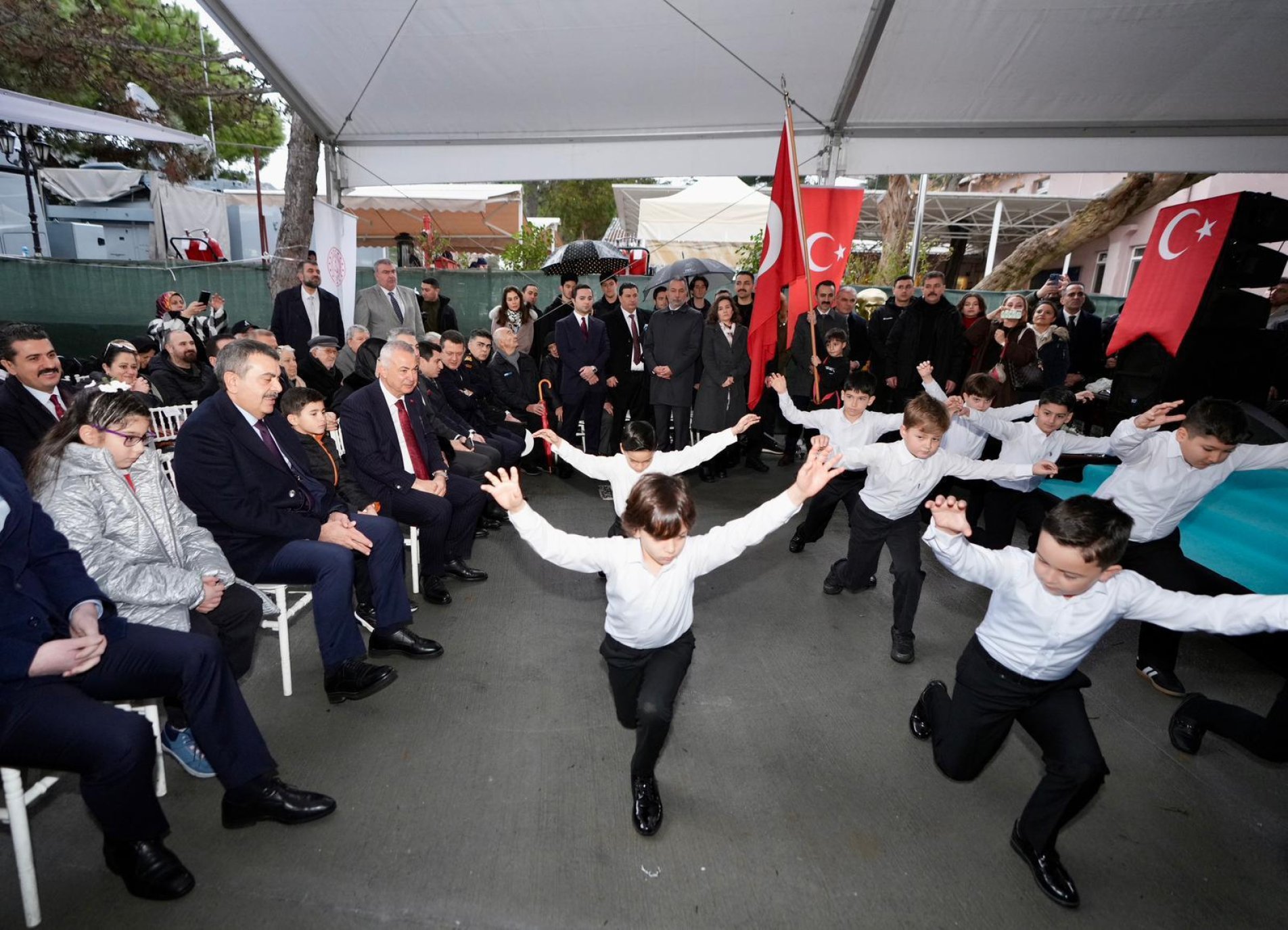 Konuşmaların ardından Bakan Tekin, okul yapımını üstlenen hayırsever Recep Düzgit’e plaket takdim etti. Bakan Tekin, protokol üyeleri, hayırsever aile ve öğrenciler tarafından açılış kurdelesi kesildi.