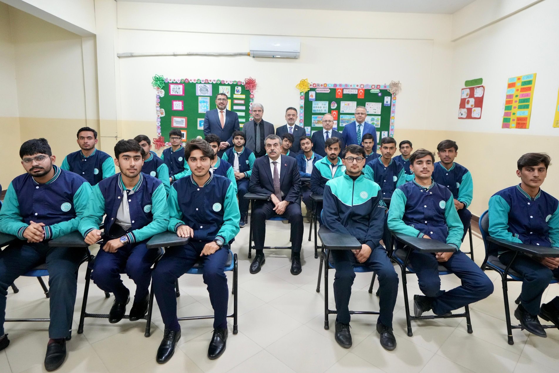 Sınıf ziyareti de yapan Bakan Tekin, öğrencilerle sohbet etti, Türkiye ile Pakistan arasındaki güçlü kardeşlik bağlarını aktardı.