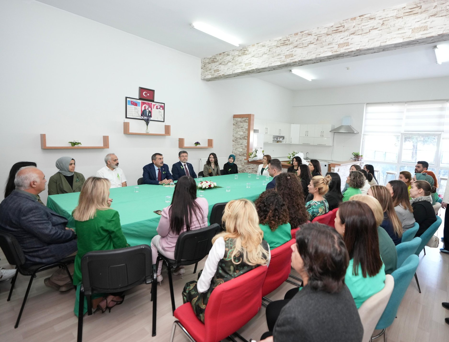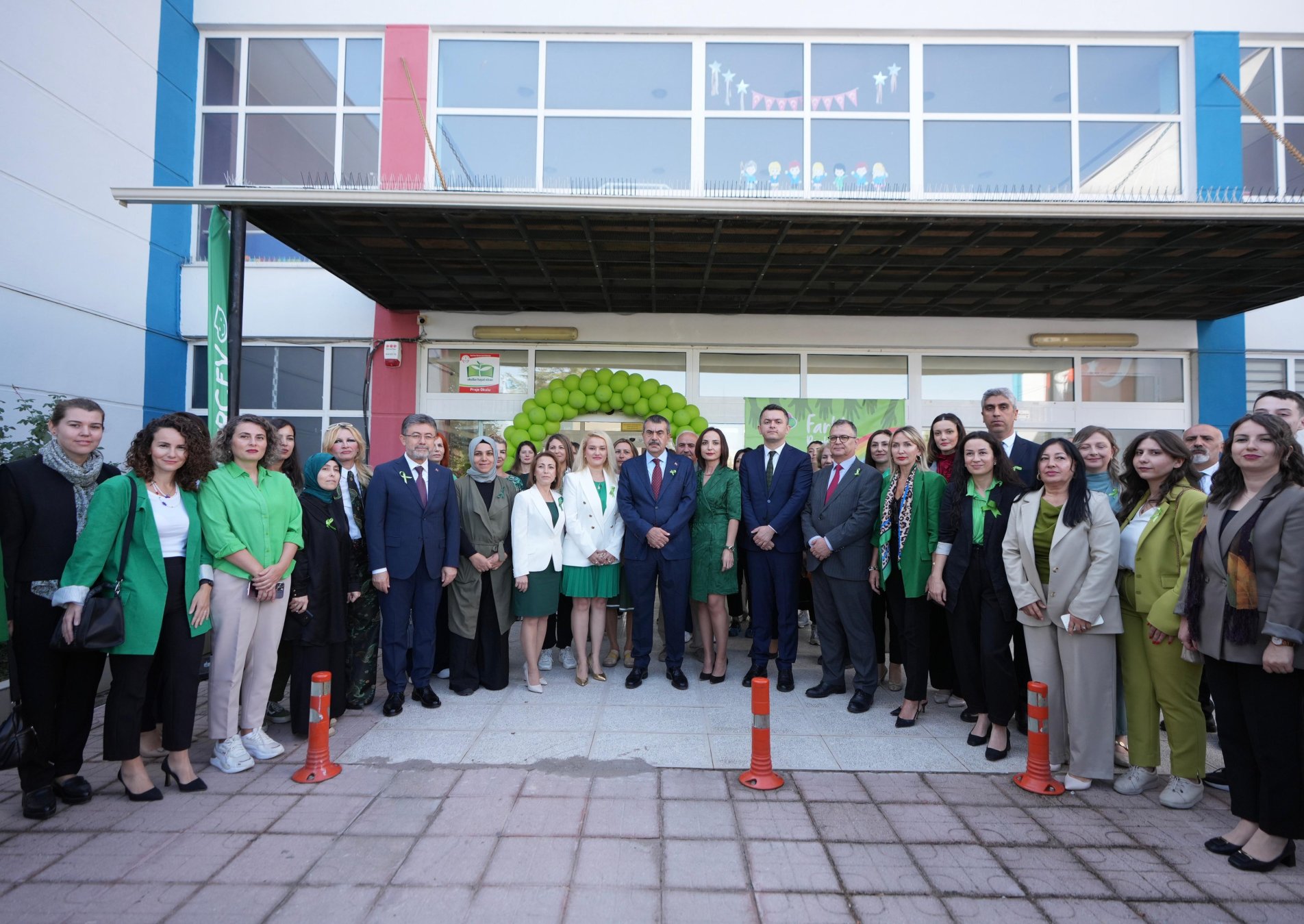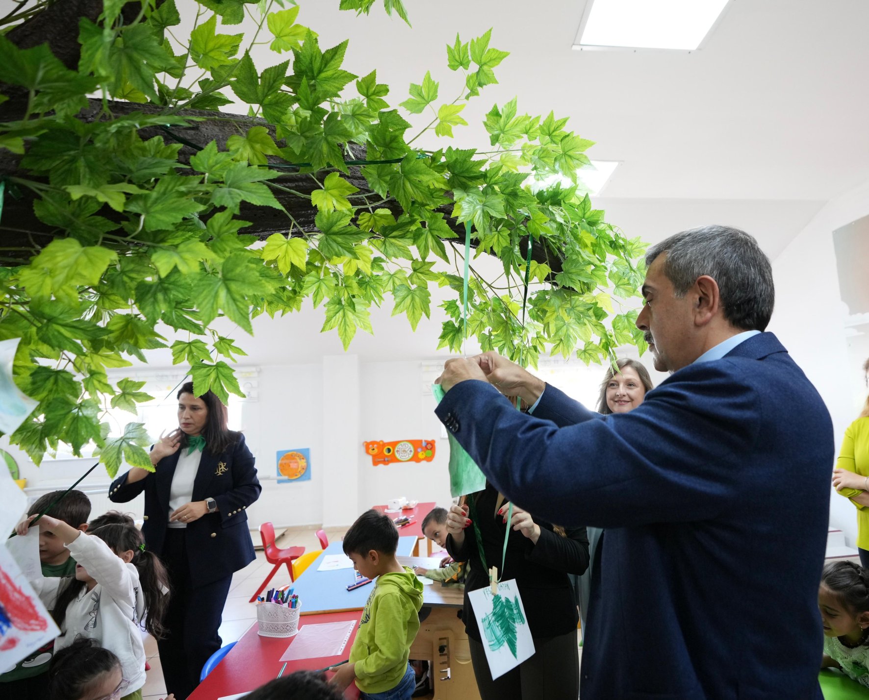 Okulda özel gereksinimli öğrenciler tarafından hazırlanan “Yeşil Vatan” temalı “Tohumu Bil” etkinliğine katılan iki Bakan, daha sonra öğretmenler odasında öğretmenlerle görüştü, taleplerini dinledi.