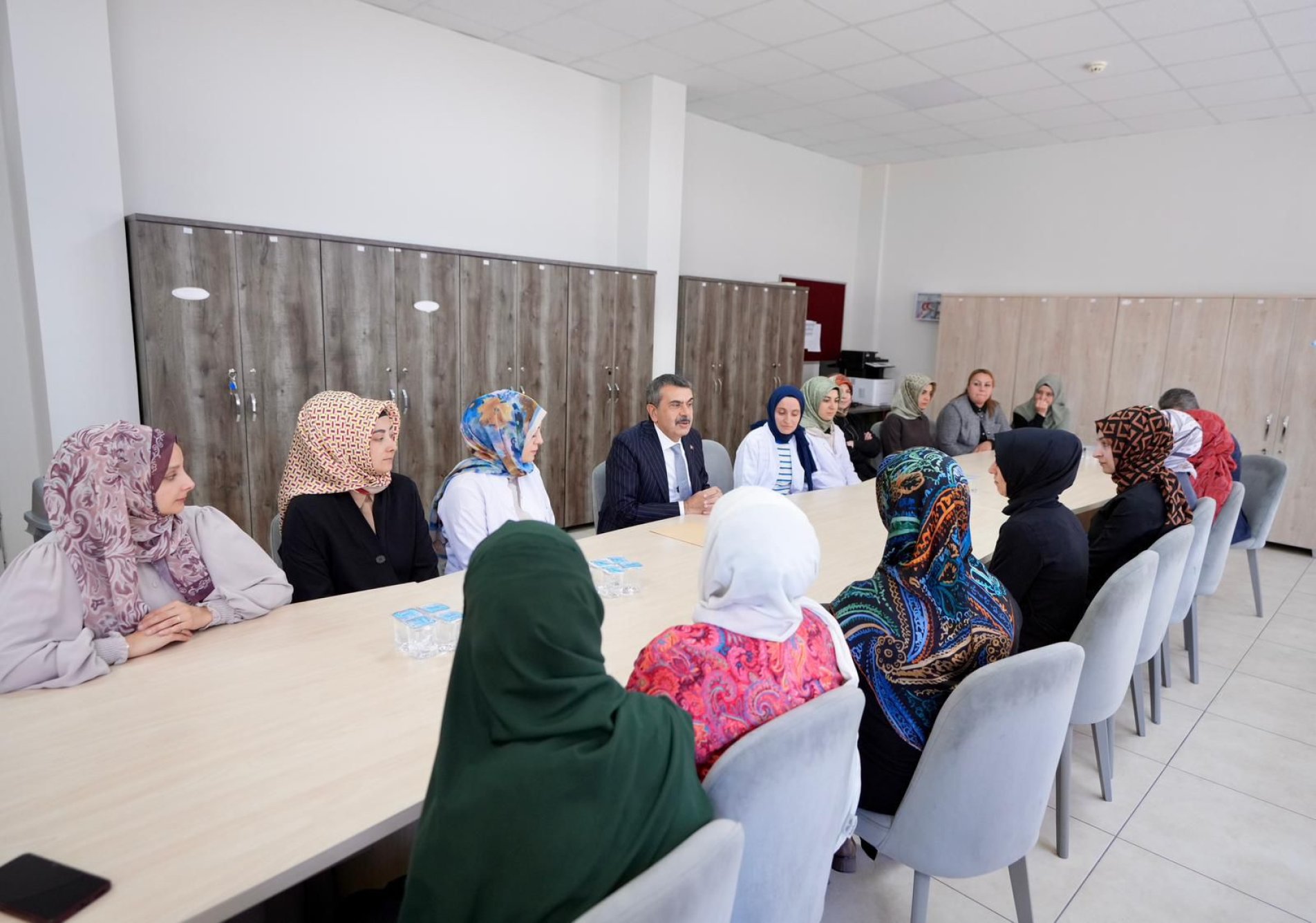 Öğretmenler odasında eğitimcilerle bir araya gelen Bakan Tekin, görüş ve talepleri dinledi. Türkiye Yüzyılı Maarif Modeli konusunda fikirlerini söyleyen öğretmenler, memnuniyetlerini dile getirdiler.