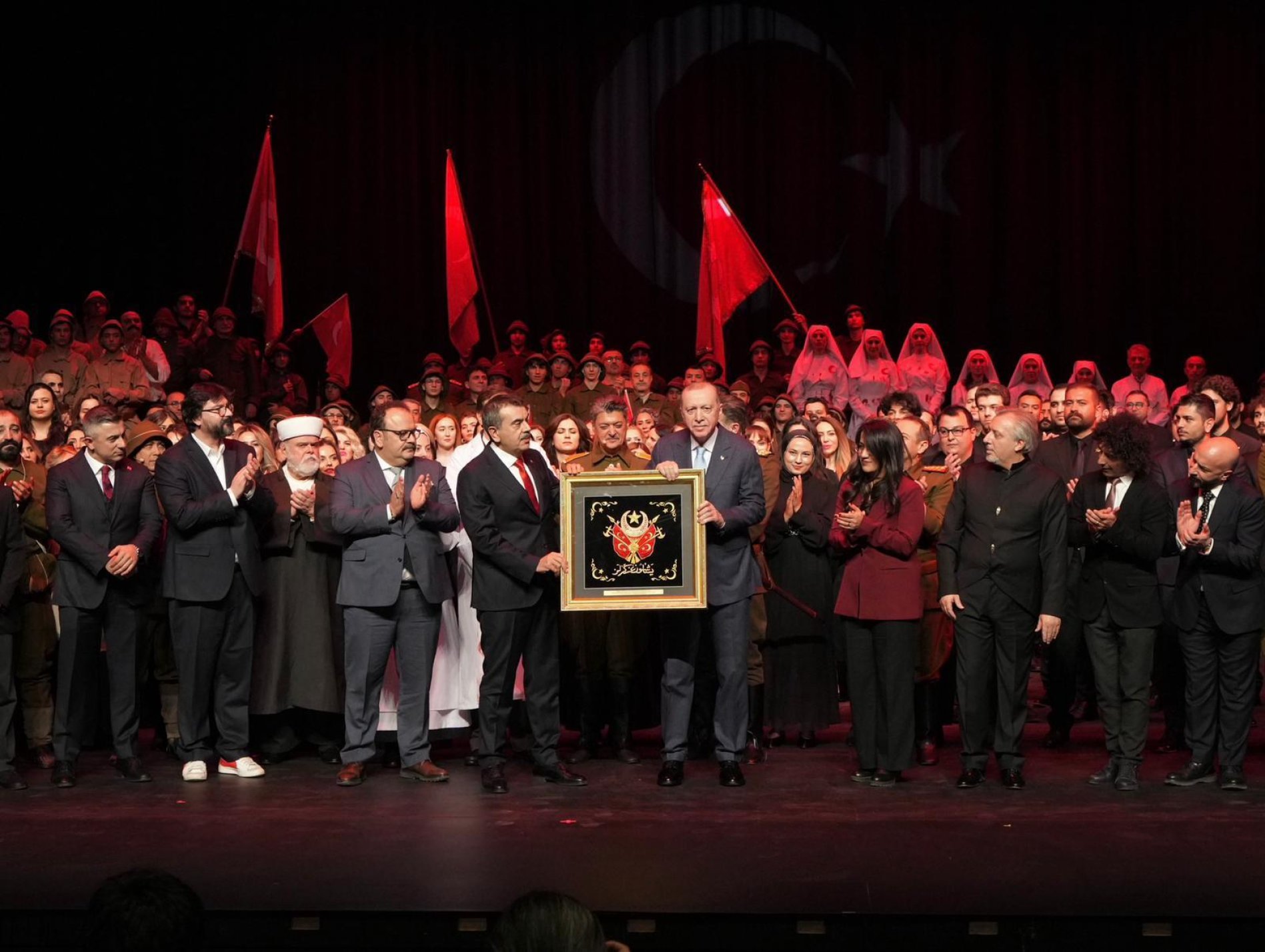 Cumhurbaşkanı Recep Tayyip Erdoğan; Beştepe Millet Kongre Merkezinde, senaryo ve tarih danışmanlığını Millî Eğitim Bakanı Tekin’in yaptığı tiyatro eserinin gösterimine katıldı. Oyunu Cumhurbaşkanı Erdoğan’ın yanı sıra Bakan Tekin, İçişleri Bakanı Mustafa Çiftçi, Tarım ve Orman Bakanı İbrahim Yumaklı ile çok sayıda davetli izledi.