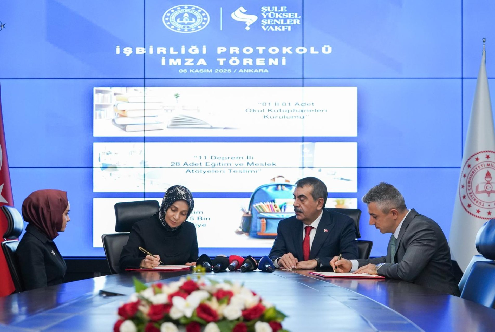 Millî Eğitim Bakanlığı ile Şule Yüksel Şenler Vakfı arasında “Okul Kütüphanelerinin Kurulumu ve Geliştirilmesine Yönelik İş Birliği Protokolü”, Bakanlık’taki Öğretmenler Odası Toplantı Salonu’nda imzalandı.