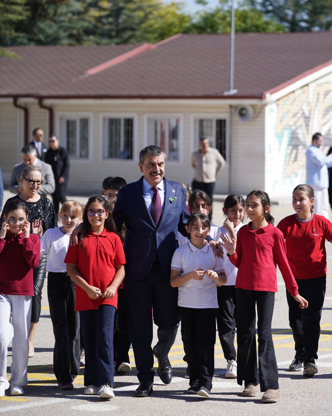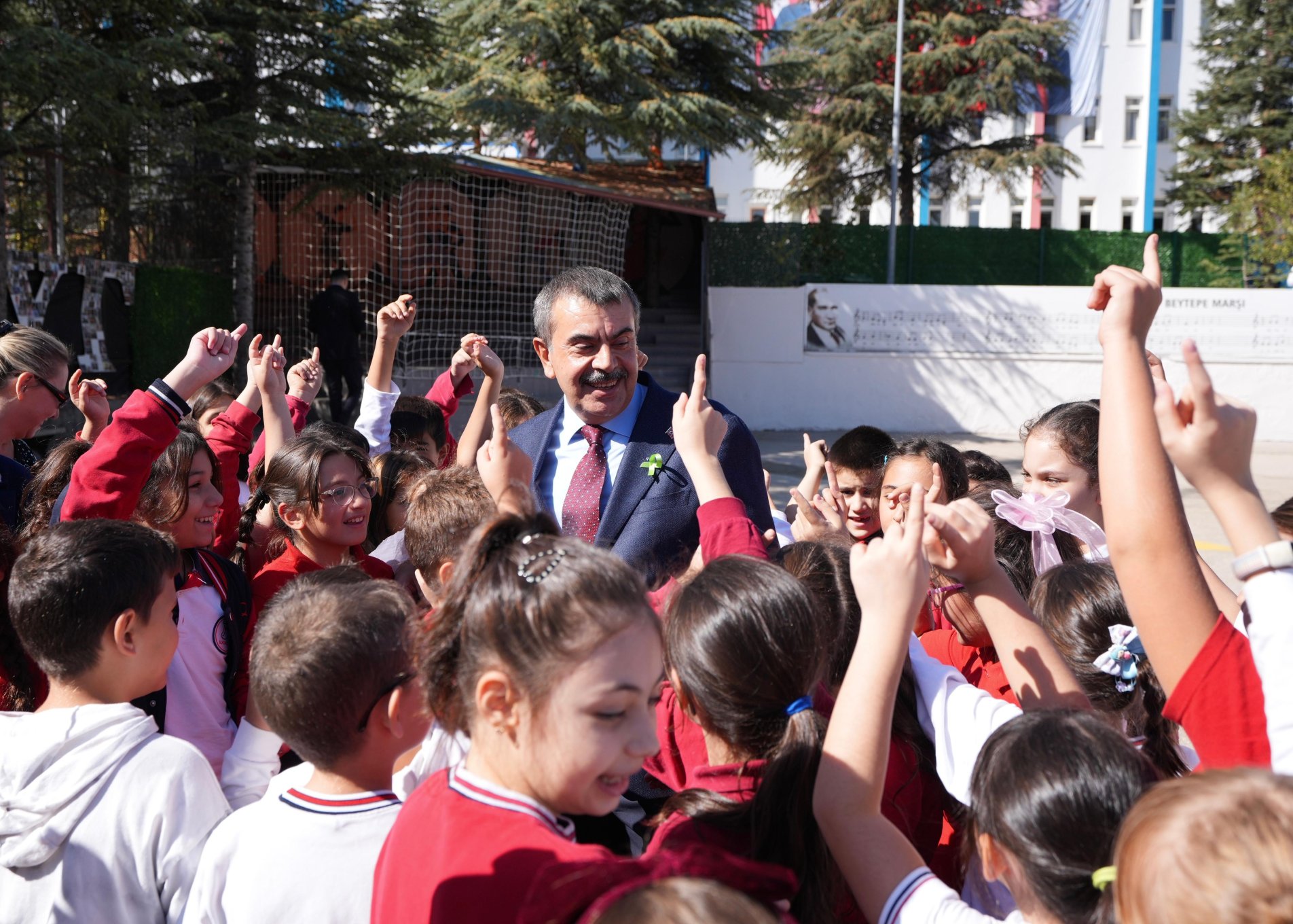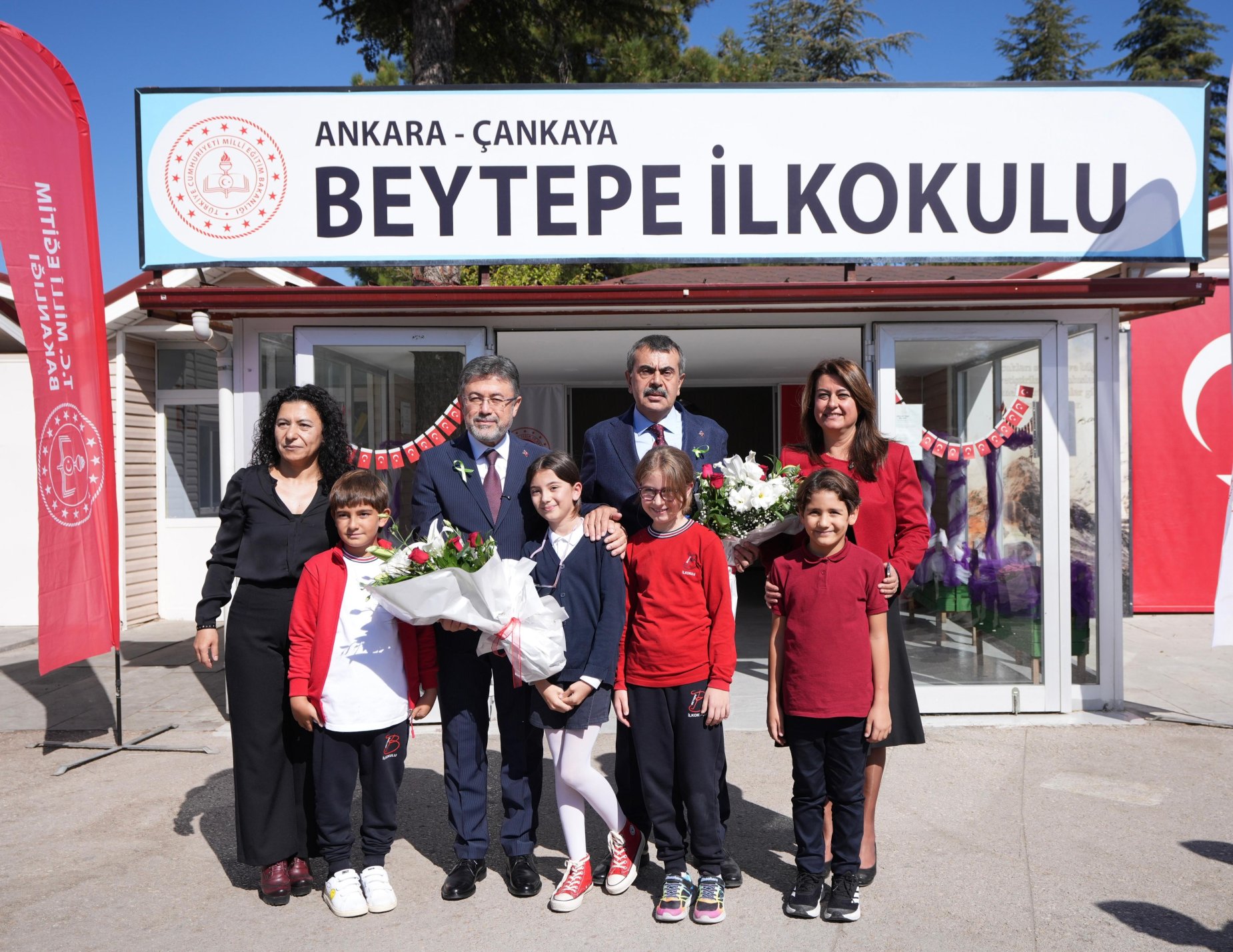Bakan Tekin, protokol öncesinde geldiği Beytepe İlkokulunda öğrenciler tarafından çiçeklerle karşılandı.