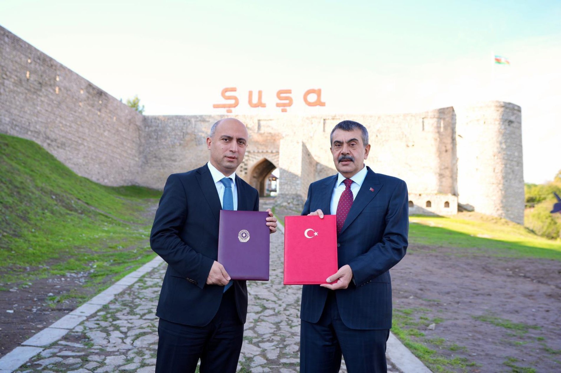 Millî Eğitim Bakanı Yusuf Tekin ile Azerbaycan Bilim ve Eğitim Bakanı Emin Amrullayev, Karabağ Üniversitesinde gerçekleştirilen törende, mesleki eğitim alanındaki iş birliğini güçlendiren ek protokole imza attı.